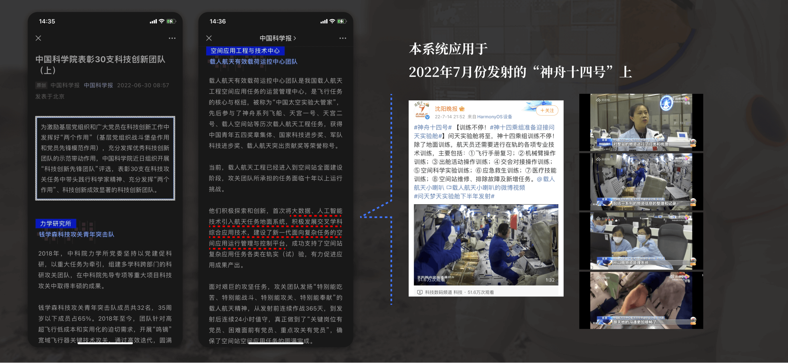 2022年7月,随着“神州十四号”载人飞船的发射及与中国空间站的对接,本系统正式被宇航员使用,该系统对整站的物资进行了归类和梳理,包括一系列的物资信息的整理和记录,该物资管理系统使得天地间的沟通更加舒畅了。